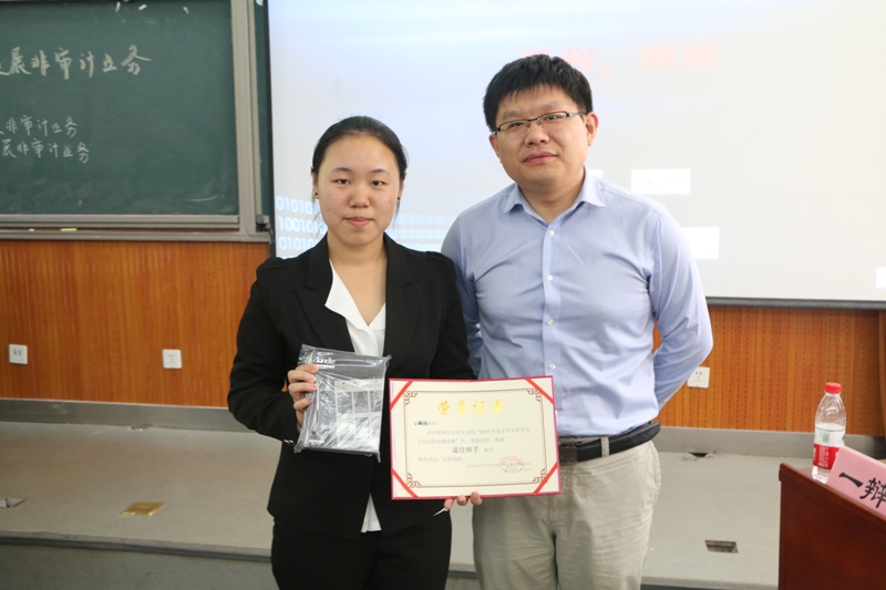 张伟华老师为总决赛最佳辩手王瀚旎同学颁奖