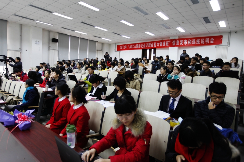 2012年12月1日,威廉希尔中文官网“ACCA国际化会计职业能力训练班”信息发布和选拔说明会在沙河校区主教学楼108教室顺利召开。本次活动邀请到了中国教育出版传媒股份有限公司财务部主任王剑辉先生作为嘉宾,威廉希尔中文官网经理孟焰教授、副经理袁淳教授、党总支副书记孟雪老师、ACCA教育中心主任武羿老师也参加了此次说明会。本次说明会由袁淳教授主持。