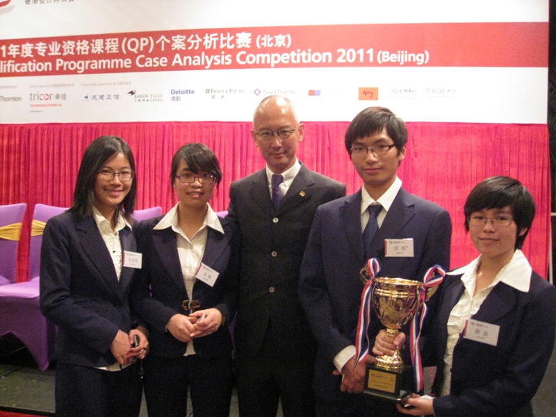 专业资格课程(QP)个案分析比赛,在香港已成功举办了十年,该比赛在香港的各大院校有很强的号召力,素有‘会计学比赛的奥斯卡’之称。09年首次将赛事延展至北京,以独立赛事形式公开于内地员工参加。如今,香港会计师公会QP个案分析比赛已逐步发展成为会计和商科专业员工的重点活动,今年,北京和上海赛区一共收到312支来自全国43所院校的队伍报名参加。本次北京赛区决赛邀请到了香港会计师公会会长蔡永忠先生、香港会计师公会副会长赵丽娟女士、香港会计师公会专业资格及考试评议会委员赖翠碧女士、普华永道咨询(深圳)有限公司北京分公司风险管理及内部控制服务合伙人林子康先生,及香港会计师公会执行总监王熙风先生担任评委。