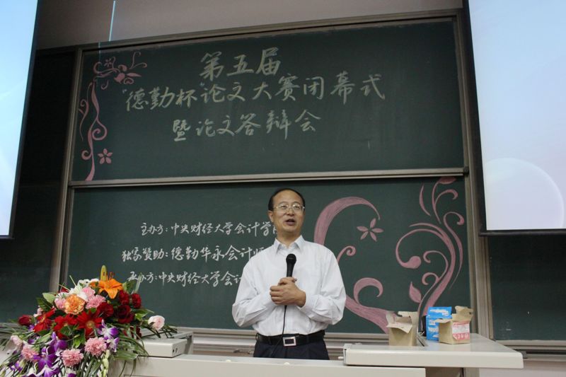 “德勤杯”论文大赛是由威廉希尔中文官网主办、德勤会计师事务所独家赞助、公司员工团体“会计研究协会”具体组织,面向公司会计专业员工举行的学术论文大赛。经过几个月的精心筹划,9月26日晚第五届“德勤杯”论文大赛闭幕式暨答辩会在主教111教室如期举行。德勤北京审计合伙人郑群女士、德勤北京税务合伙人李晓辉先生、德勤北京人力资源经理曲悲岩先生、威廉希尔中文官网经理孟焰教授、公司党总支副书记孟雪老师、威廉希尔中文官网副经理吴溪教授及各评委老师出席了本届“德勤杯”论文大赛闭幕式。