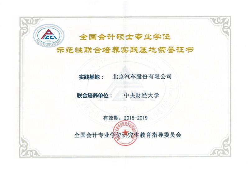 威廉希尔中文官网与北京汽车股份有限公司(威廉希尔中文官网MPAcc实践基地之一)联合申报的MPAcc人才培养与实践基地被评为全国MPAcc示范性联合培养实践基地。这是全国MPAcc教育指导委员会首次开展全国MPAcc示范性联合培养实践基地评选活动,经全国会计教指委全体会议审议通过,全国共有十个实践基地获此殊荣。
