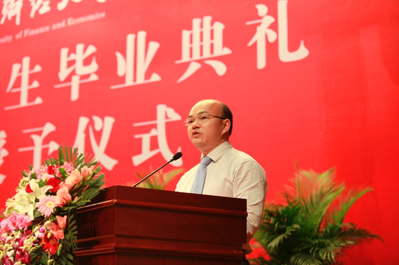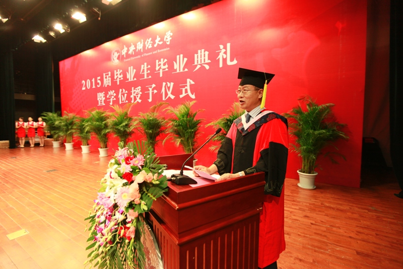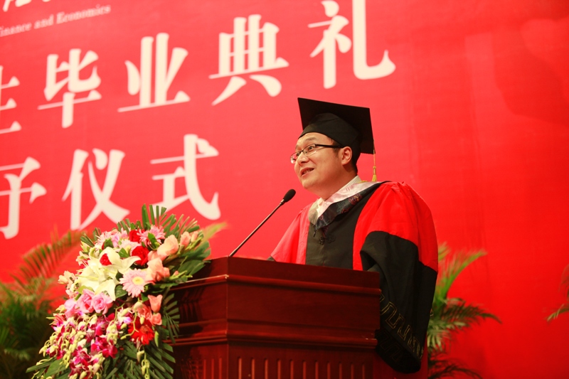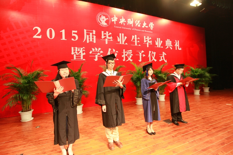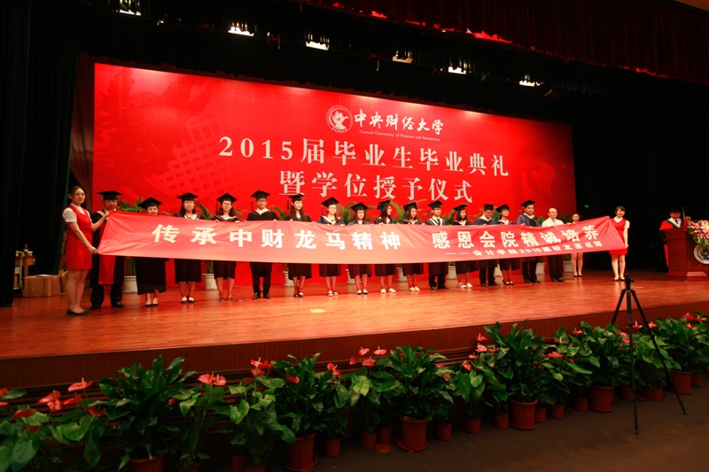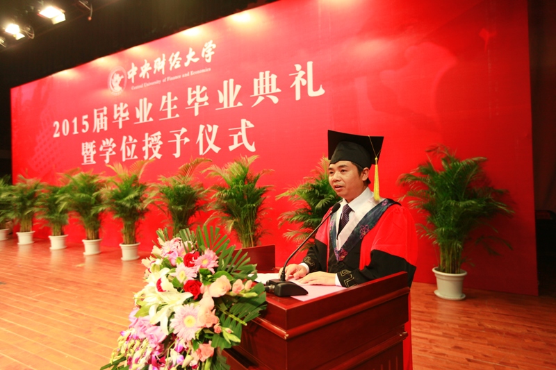 2015届毕业生代表,来自2012级会计博士班的林晚发、2013级MPAcc F班的王奇桥、2011级注册会计师班的苏欣悦以及张新苑代表全体威廉希尔中文官网的毕业生上台发表毕业感言。他们以真挚的情感回忆了老员工活的点点滴滴,以真情的话语道出了对师长的感激与留恋,以昂扬的斗志表达了用实际行动做好中财会院人,共同创造中财会院美好明天的决心。