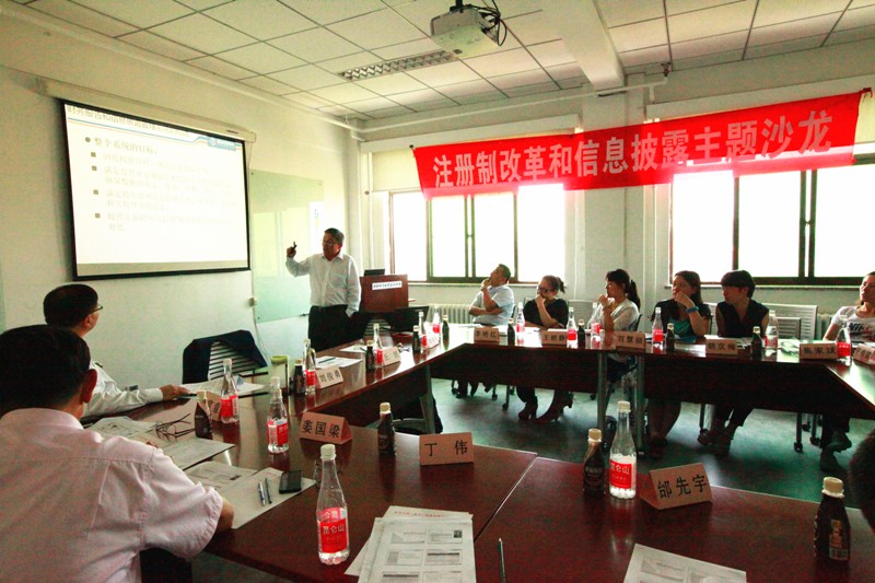 2015年5月22日下午2点,公司携手景华天创(北京)咨询有限责任公司、信永中和会计师事务所,于公司南路主教楼1210会议室举办了注册制改革和信息披露主题沙龙活动。公司副经理刘俊勇教授主持沙龙活动,公司该领域专家学者与到场的20余名集团和上市公司管理精英一道,共同探讨了如何为上市公司建立完善的信息披露体系,并就披露管理的未来发展趋势等话题展开了互动讨论。