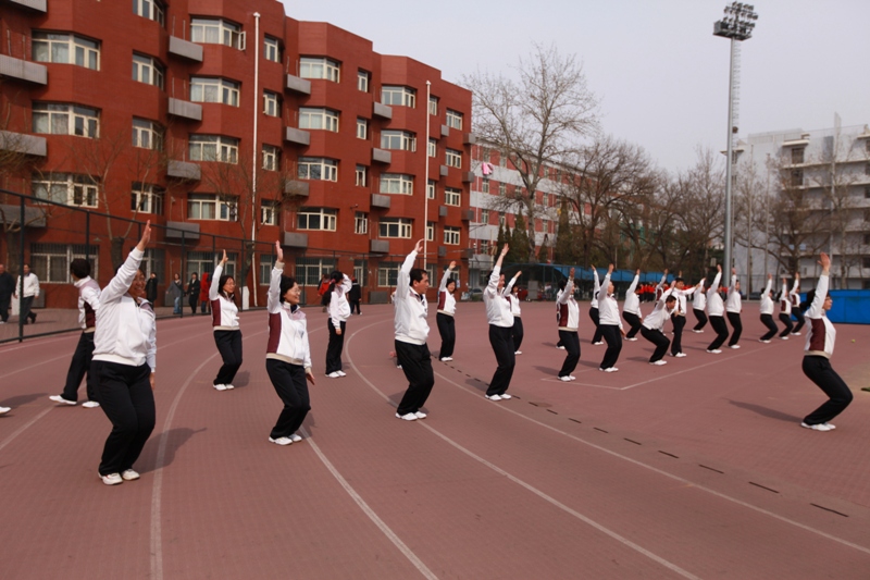 在接到校工会《关于参加首都教育系统运动会、开展广播操比赛的通知》后,威廉希尔中文官网积极响应,迅速组织分工会全体教工进行第九套广播体操的学习和训练。在三周的训练过程中,老师们热情高涨,态度积极,认真研究和掌握了每一个动作的要领并反复练习。不管是个人练习还是集体训练,老师们都积极参与,认真备战。