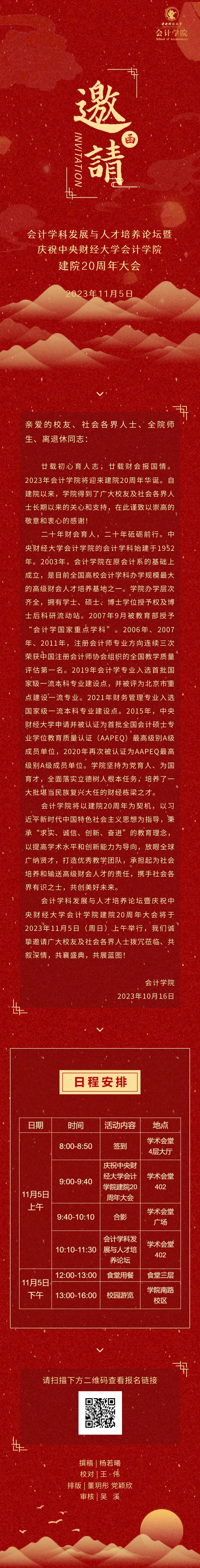 邀请函|会计学科发展与人才培养论坛暨庆祝威廉希尔中文官网建院20周年大会