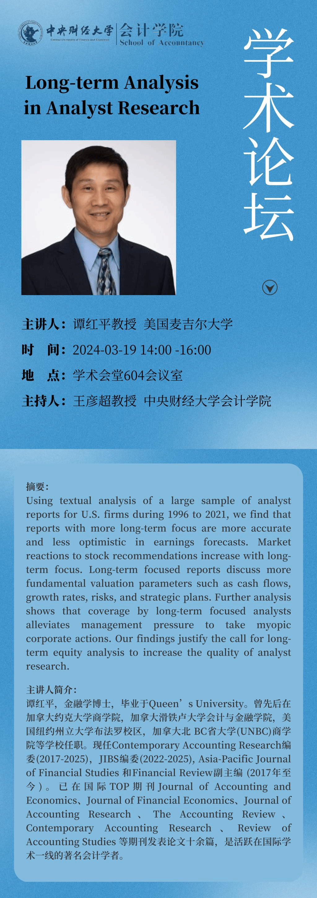 学术论坛|谭红平:Long-term Analysis in Analyst Research