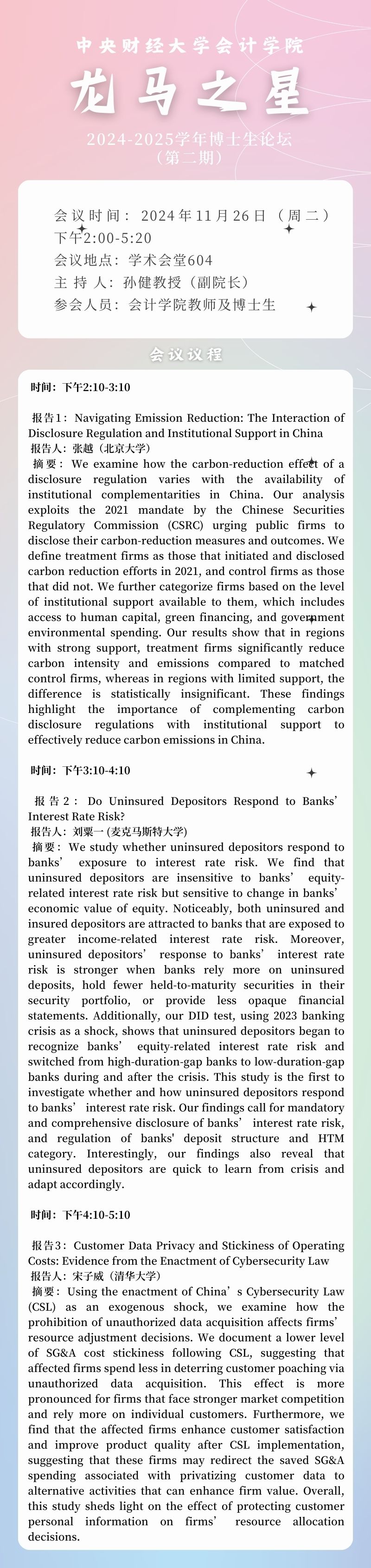 2024-2025学年“龙马之星”博士生论坛(第三期)