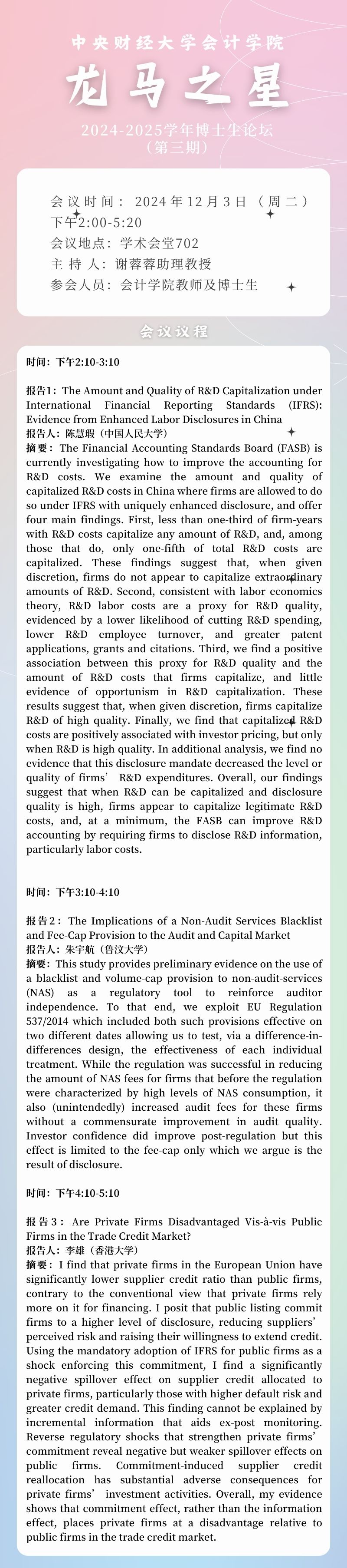 2024-2025学年“龙马之星”博士生论坛(第三期)