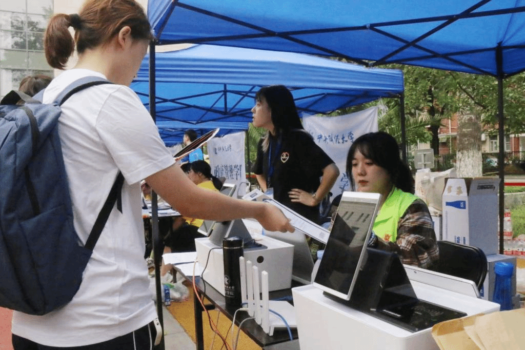 公司领导、新生班主任及辅导员老师来到报到处,了解新生报到情况,细致核查迎新的每一步流程,指导工作人员将迎新工作完成得尽善尽美,并向同学们送去了殷切的期盼和暖心的祝福,鼓励同学们尽快适应校园生活,让大家感受到了如沐春风般的温暖。