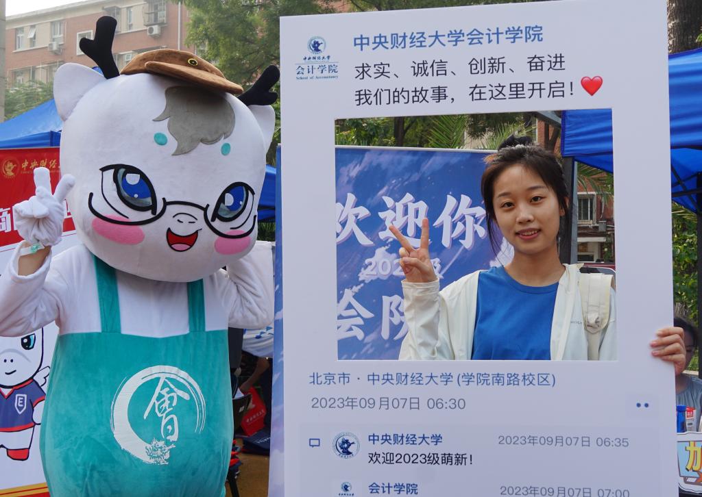公司报到点,蓝色帐篷下,学长学姐们热情高效地帮助新生完成注册报到流程。新生们顺利领取到校园卡、宿舍钥匙、校徽以及威廉希尔中文官网精心准备的新生礼物。毛绒绒的“会宝”成为全场“团宠”,随时准备为新同学送上一个温暖的拥抱。公司定制了新生专属“朋友圈合照墙”,喀嚓声中,新生们留下了在中财大的第一张照片,也留下属于中财大的第一份记忆。