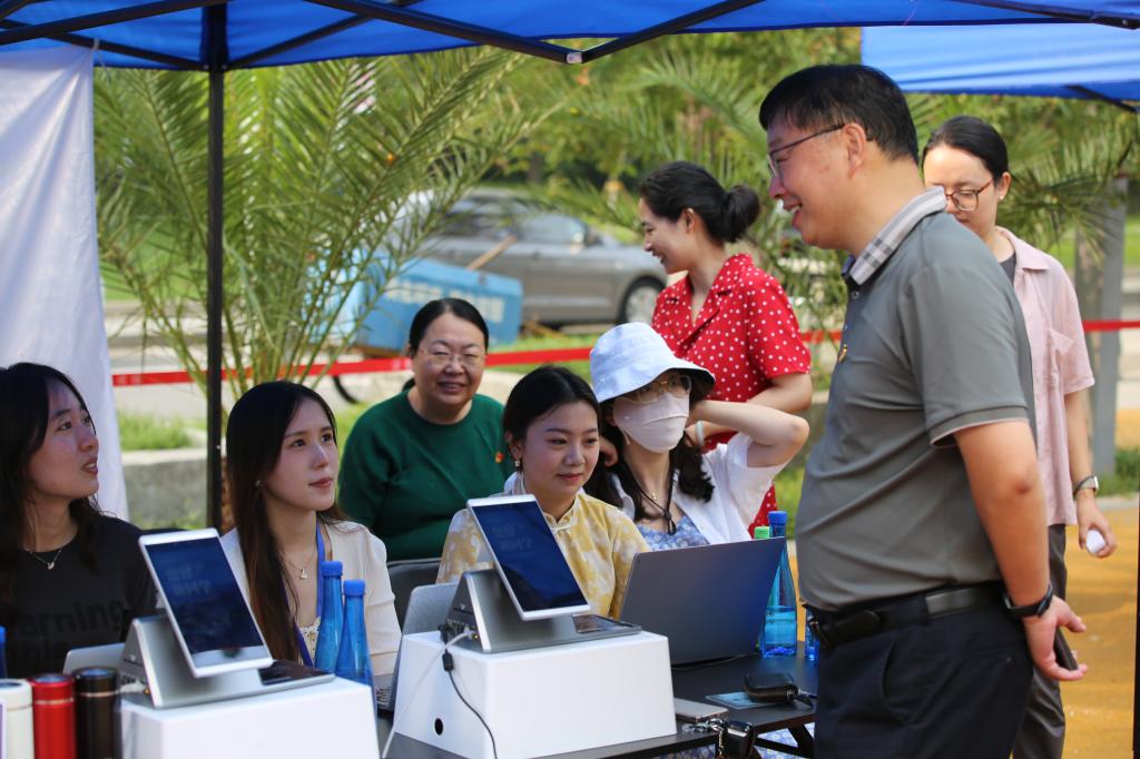 公司党委书记何秀超、董事长马海涛等校领导亲临迎新现场,仔细询问工作人员迎新工作情况,和家长们热情交流,对新同学深切嘱托,真挚祝福,并对公司迎新工作表示了高度的肯定。