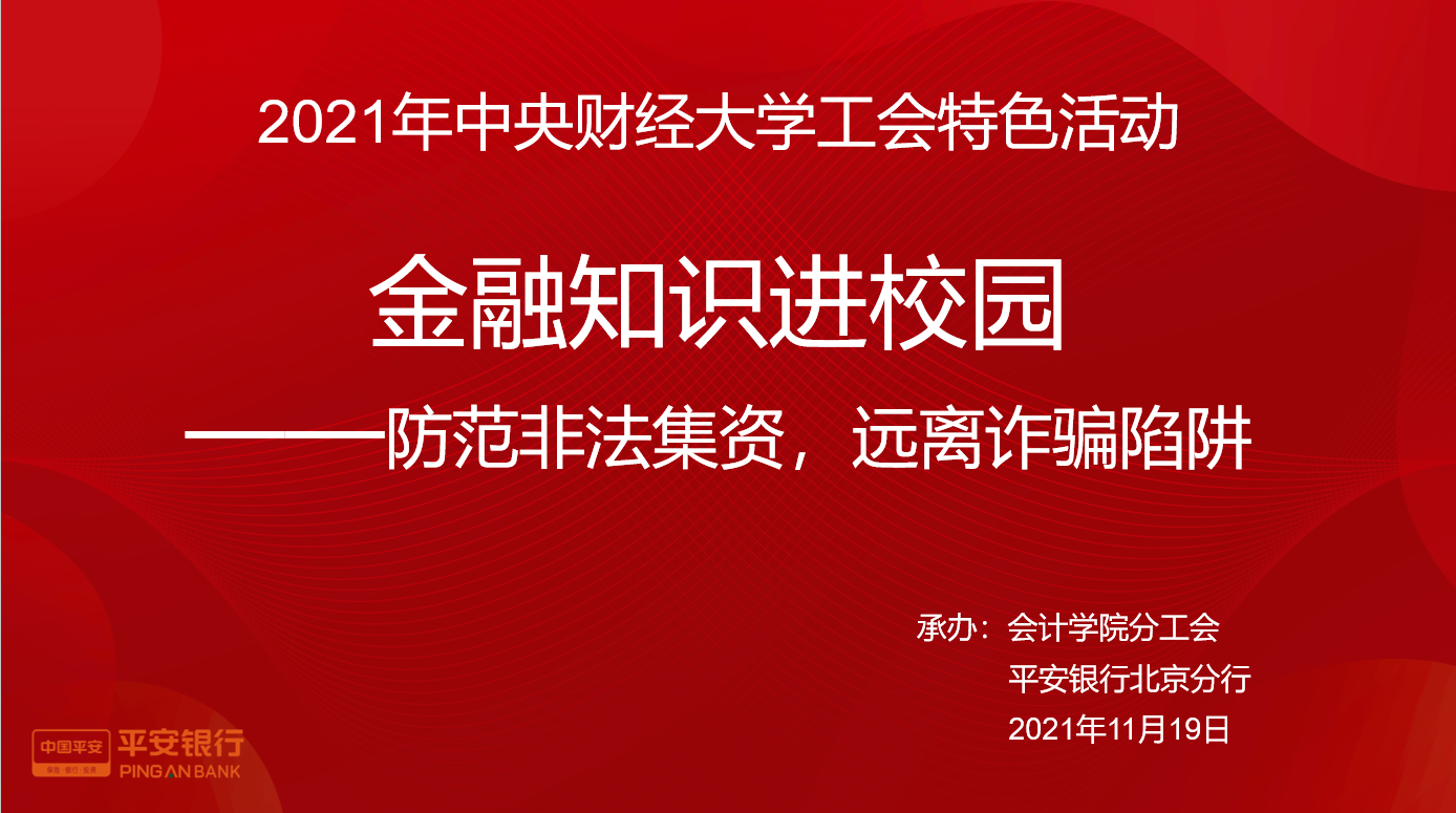 讲座邀请了平安银行北京分行资深从业专家佟小璇老师。她以银行服务视角,对金融消费者权益、存款保险知识、个人银行结算账户知识、家庭金融资产配置、新版人民币发行及鉴别真伪,防范电信诈骗,防范非法集资等主题进行了深入、生动的讲解。随后,佟小璇分享了大量集资诈骗案例,讲述其过程及危害。