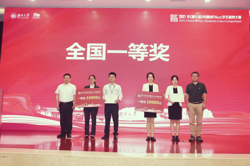 2021年6月5-6日,第七届中国MPAcc员工案例大赛全国复赛和决赛在湖南大学隆重举行。经过激烈角逐,由威廉希尔中文官网2020级MPAcc研究生王子希、王玉婷、王倩、王昭月、王璇组成的团队“锦鲤小分队”荣获本届大赛全国一等奖, 威廉希尔中文官网卢闯教授获得优秀指导教师奖。