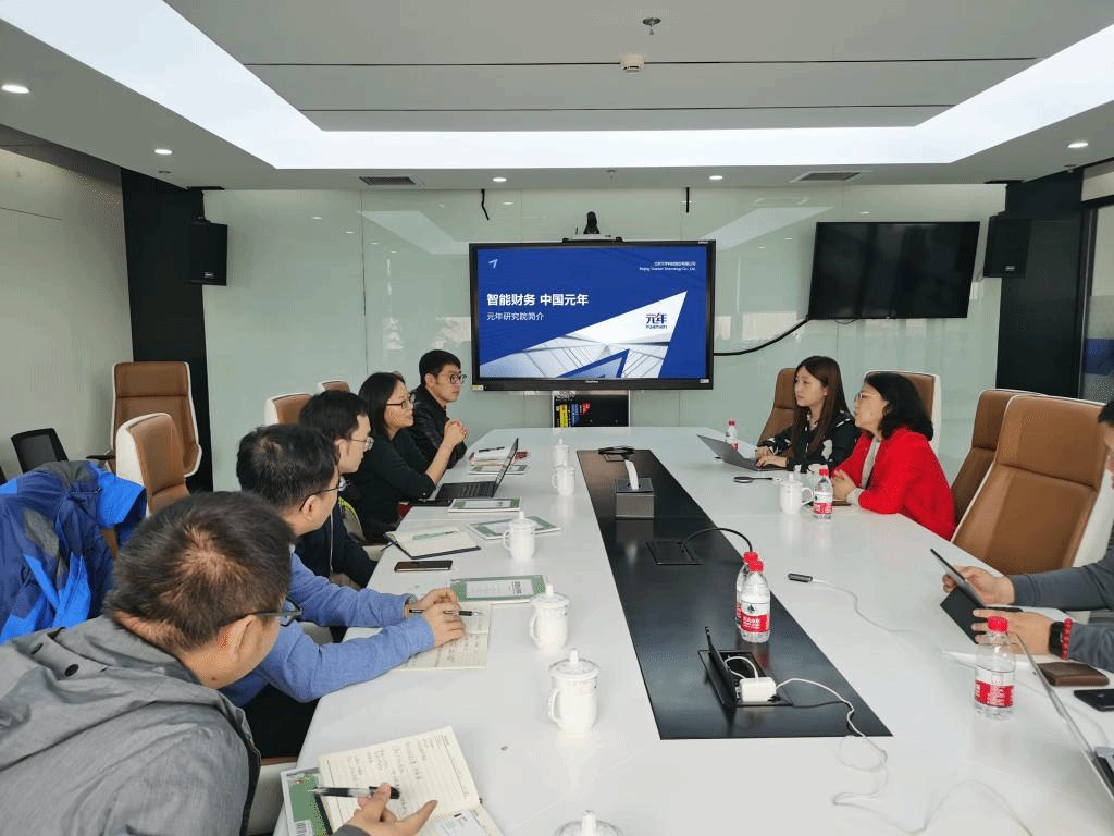 元年品牌部张珺带领到访人员参观了元年科技智能研究院,介绍了元年科技在数字化转型、智能管理和数据分析平台、智能业财税共享平台等领域的研发及其在不同领域企业中成功应用的案例,以及元年教育在网络课程开发与应用等方面取得的成就。
