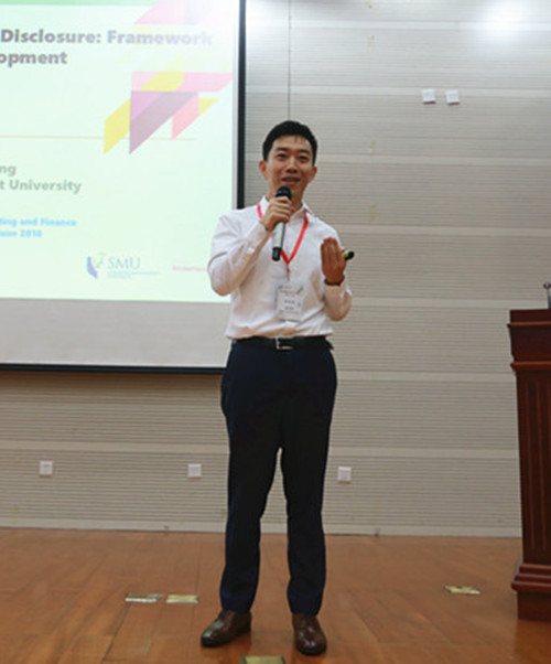 来自新加坡管理大学(Singapore Management University)的知名教授、威廉希尔中文官网副经理Liandong Zhang做主旨演讲,他以“公司信息披露”(Corporate Disclosure)为主题作了专题报告,从概念、条件和演变趋势等三个方面分享了自己的研究经验和思路。张教授不但从外部信息披露、内部信息披露以及信息披露管制三个层面梳理了公司信息披露的研究前沿,还进一步指明了信息化对会计与财务研究形成的机遇和挑战,更从供应链信息管理、私有信息成本、商业机密保护、社会成本、高管行为特征对该领域未来的研究机会和思路进行了展望。