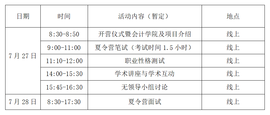 说明:营员在规定时间内全程参加夏令营活动,无故缺席将取消营员资格。